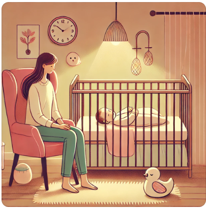 아기가 울 때마다 곁에서 부드럽게 달래주는 방법으로, 등을 가볍게 두드리거나 "쉬-쉬" 소리를 내며 안정감을 줍니다.